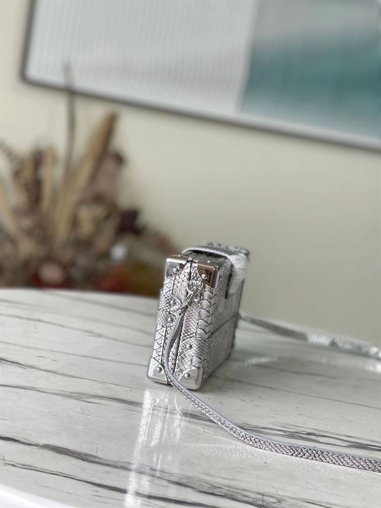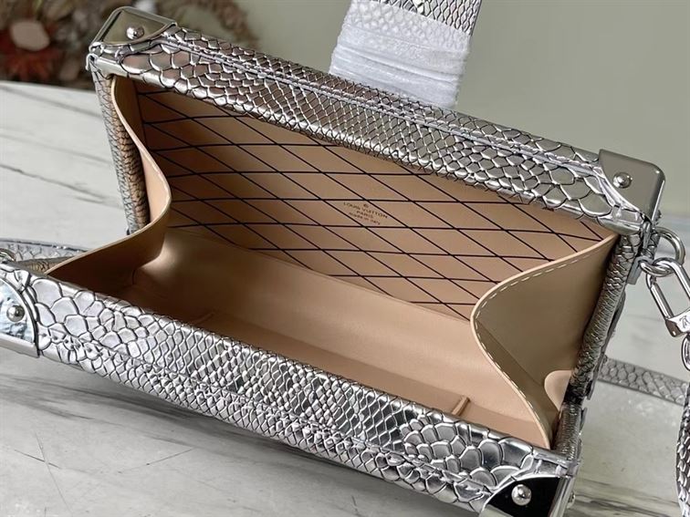 The Louis Vuitton Petite Malle Crocodilien Mat is the pinnacle of luxury and artisanal craftsmanship. The Petite Malle features signature trunk details. including the iconic S-lock closure. gleaming metal hardware. and leather trim. all meticulously designed to evoke the spirit of timeless travel. Compact yet bold. this statement piece perfectly balances elegance and practicality. making it a coveted addition to any discerning fashion collection. The Petite Malle Crocodilien Mat is a true testament to Louis Vuitton’s heritage and innovative spirit.